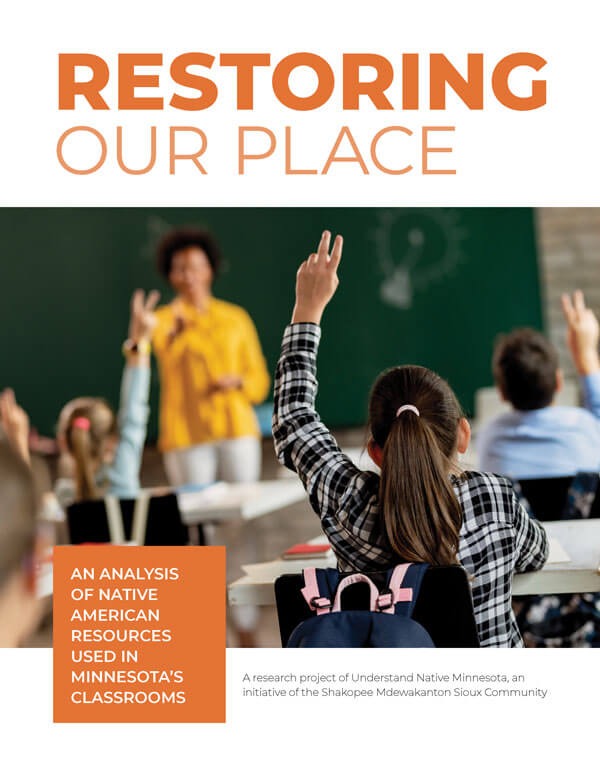 “Restoring Our Place: An analysis of Native American resources used in Minnesota’s classrooms,” examines what curricular resources and professional development programs are used in the state’s elementary and secondary schools, which ones should be shared more broadly, what gaps or inadequacies exist among those resources, and the most pressing needs for new resources.